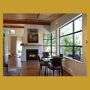 The Perch features striking variegated bamboo floors, a soaring gull-wing roof line and a wood burning fireplace. The bathroom offers a two-person shower with multiple heads, or if you prefer, have a candlelit soak in the tub for two just steps from the bed - complete with intimate views!