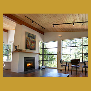 Wood-burning fireplace.