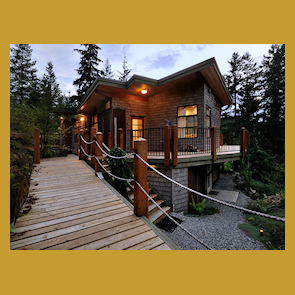 Breakfast on the sunny and protected back deck surrounded by the moss and lichen garden, or dine perched above Oyster Bay in the tree tops, while enjoying the sunset over Mount Daniel.